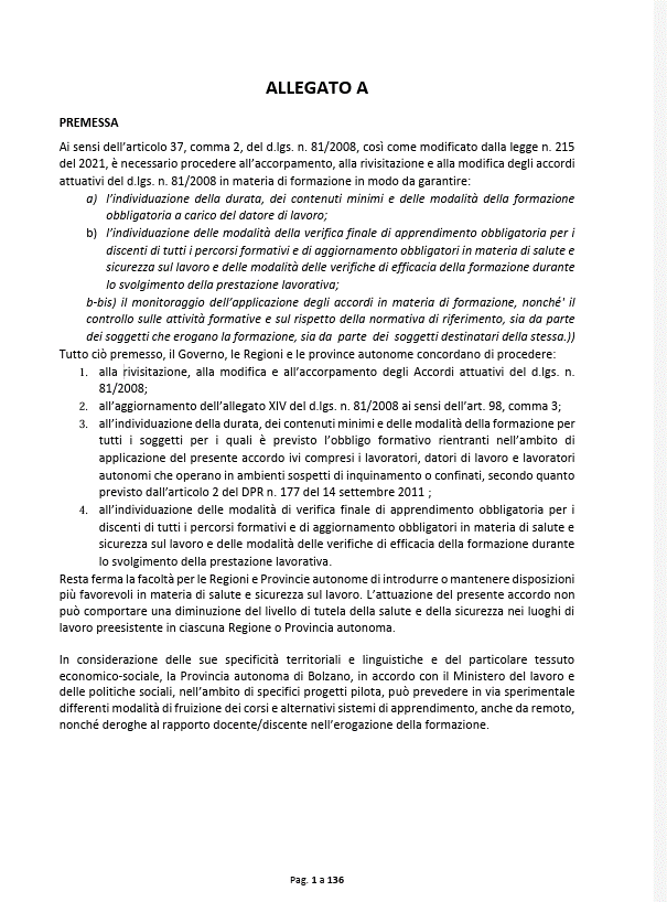 • Accordo Stato Regioni del 2011 relativo alla formazione dei lavoratori, preposti, dirigenti ex art 37 D.lgs 81/08 e datori di lavoro Rspp ex articolo 34 D.lgs 81/08;